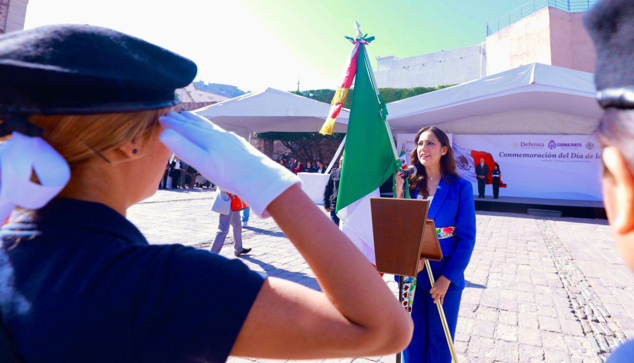 Guanajuato conmemora el Día de la Bandera con ceremonia encabezada por la gobernadora Libia Dennise García Muñoz Ledo.
