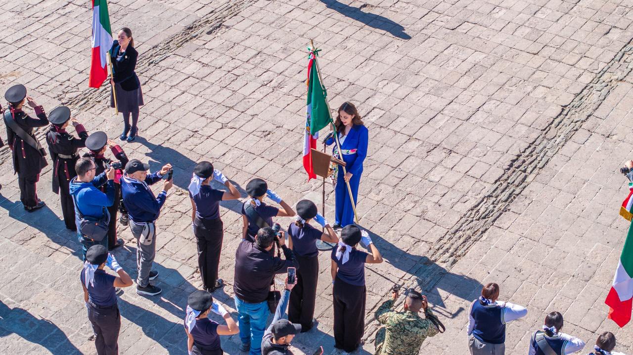 “La bandera representa nuestra historia, nuestras batallas y nuestras esperanzas. Es el compromiso permanente de construir un México más justo y solidario”, expresó la mandataria estatal.