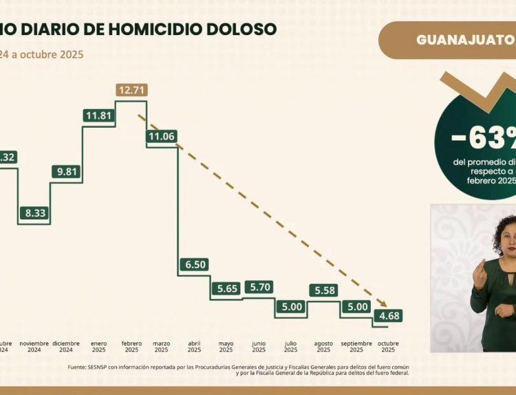 León, Gto. México registró en octubre de 2025 su nivel más bajo de homicidios dolosos en más de un año, con un promedio de...