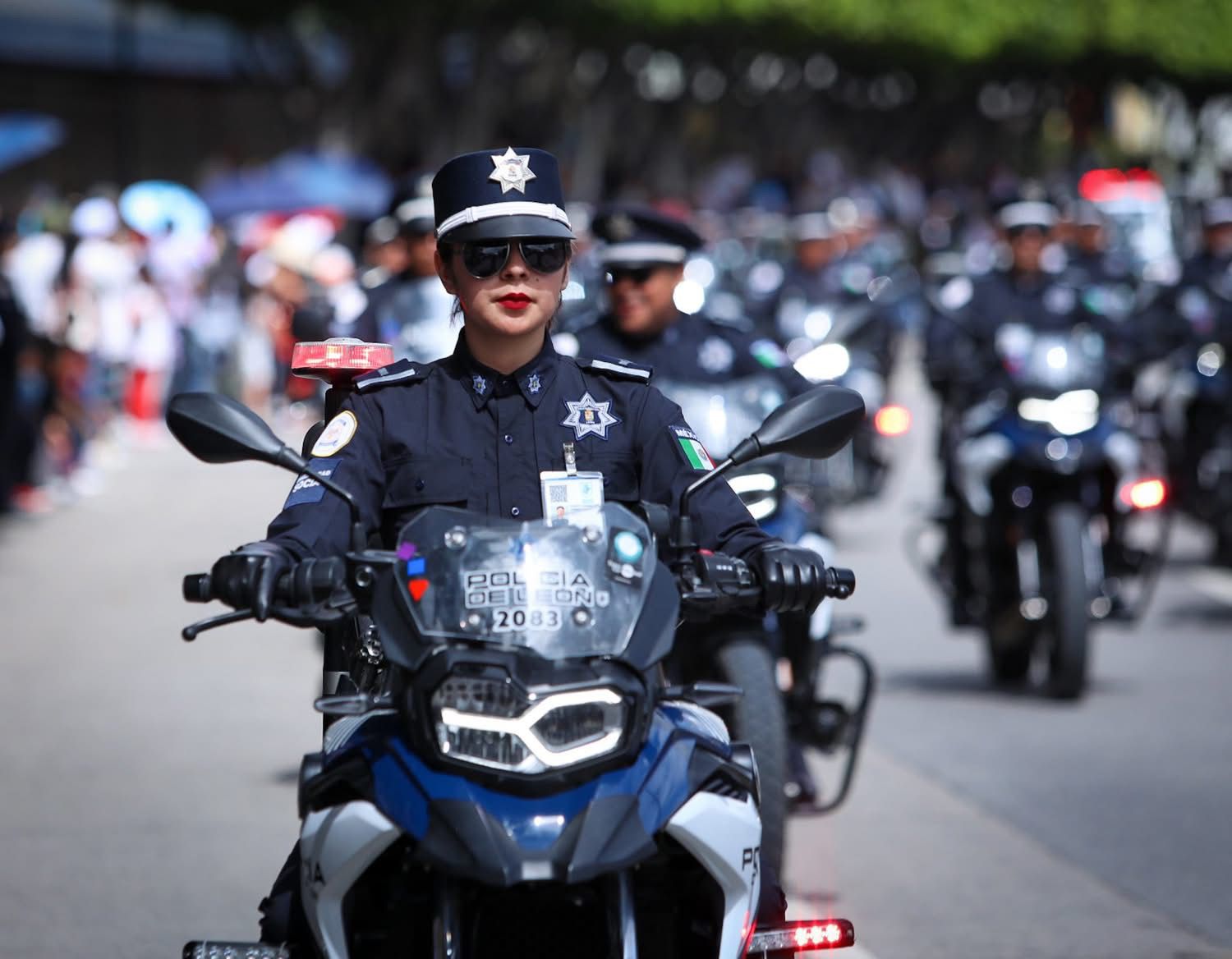 En León, el desfile cívico-militar también congregó a miles de ciudadanos desde temprana hora. La presidenta municipal Alejandra Gutiérrez Campos encabezó el acto, en el que participaron más de 2 mil 300 elementos de seguridad pública, estudiantes, bomberos, Protección Civil y agrupaciones de charros.