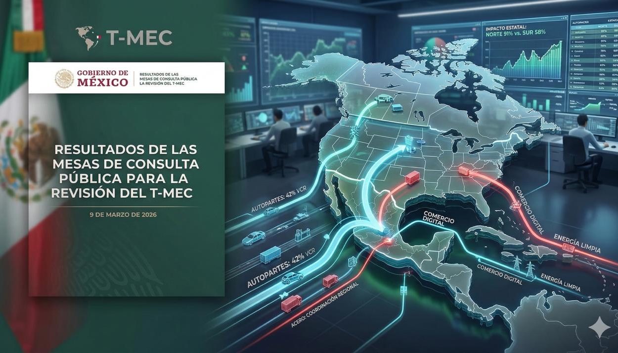 La publicación y presentación el día de ayer 9 de marzo sobre informe de la Secretaría de Economía en lo que respecta a las consultas para la revisión del T-MEC no es un trámite administrativo más; es la radiografía de un sistema nervioso económico que late a un ritmo de 1.8 millones de dólares por minuto. A tres días de su presentación, el mensaje de los sectores productivos y las entidades federativas es inequívoco: el tratado ha dejado de ser un simple acuerdo arancelario para convertirse en la arquitectura institucional que sostiene la realidad productiva de América del Norte.