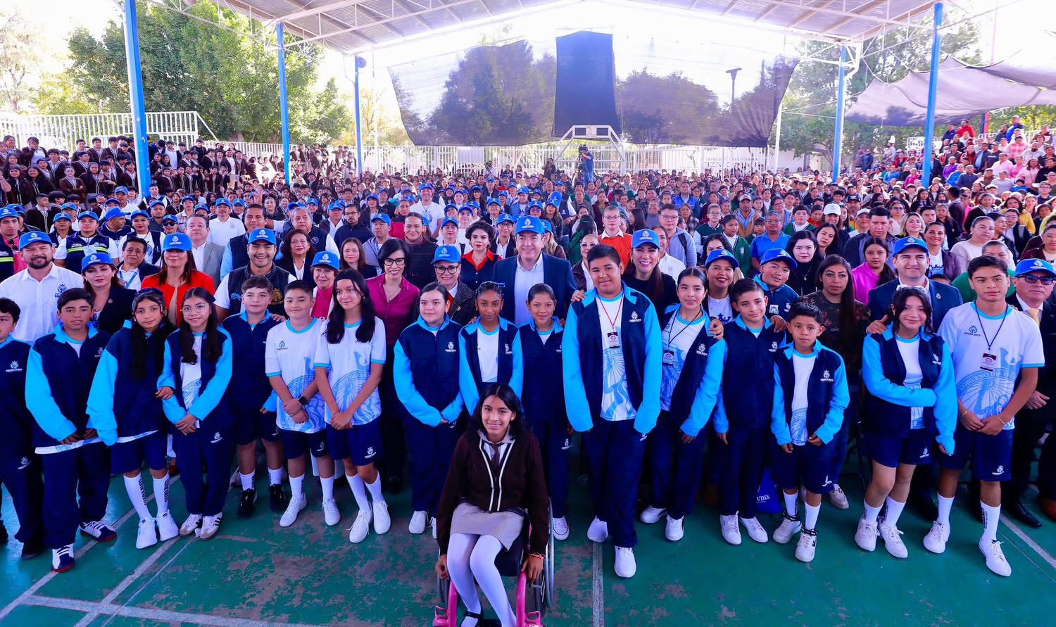 Durante el encuentro con estudiantes de secundarias públicas, la mandataria estatal entregó uniformes deportivos completos, como parte del Programa de Uniformes Escolares 2025–2026, que beneficia a 279 mil 726 alumnas y alumnos de los 46 municipios del estado.
