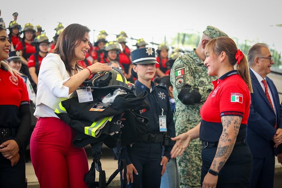 Entregan 647 chalecos balísticos diseñados para mujeres y 130 trajes estructurales para bomberos