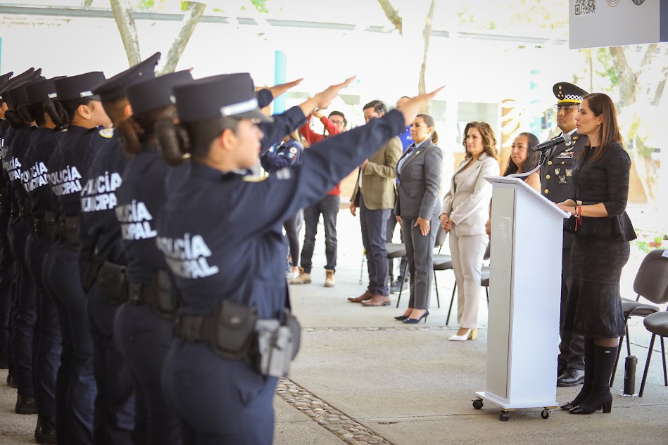 La presidenta municipal, Alejandra Gutiérrez, reconoció el compromiso de los nuevos oficiales y reiteró que la seguridad se construye con inversión, planeación estratégica y mejores condiciones laborales para los elementos.