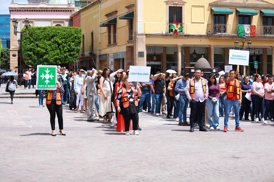 La presidenta municipal, Alejandra Gutiérrez, encabezó el ejercicio desde la Casa Municipal junto a funcionarias y funcionarios de la administración, destacando la importancia de predicar con el ejemplo al activar protocolos de actuación en caso de contingencia.