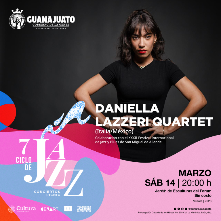 León, Guanajuato. La Secretaría de Cultura de Guanajuato anunció la realización del 7° Ciclo de Jazz 2026, un encuentro musical que reunirá a destacados exponentes del género del 13 al 15 de marzo en el Jardín de las Esculturas del Forum Cultural Guanajuato, con seis conciertos gratuitos al aire libre.