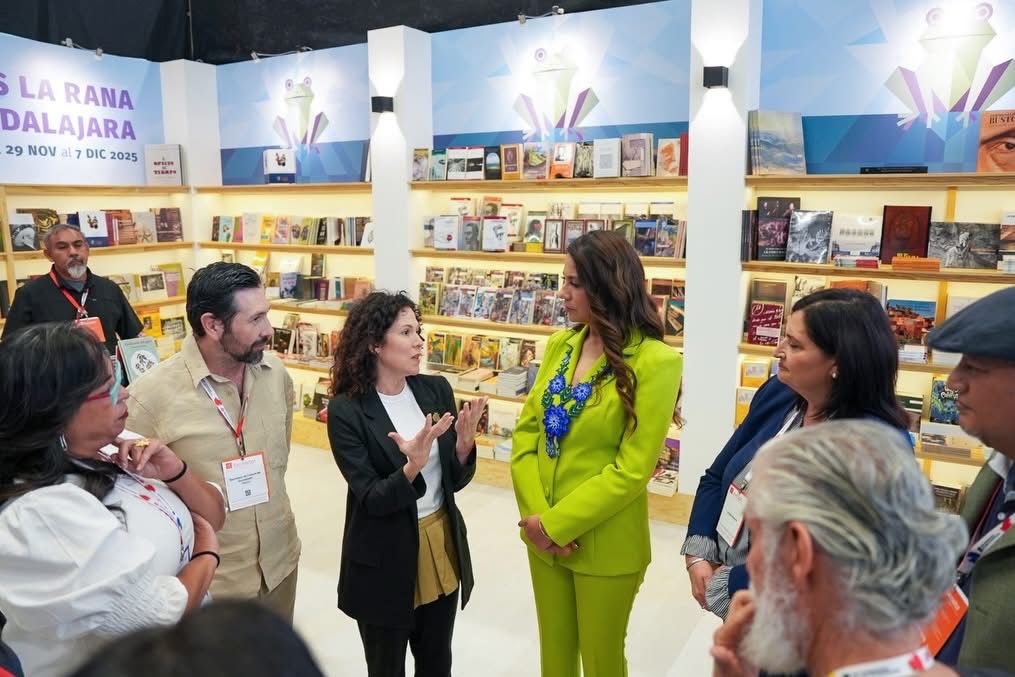 Previo al foro, la Gobernadora de Guanajuato recorrió las instalaciones de la FIL y visitó el stand de Ediciones La Rana y el Fondo Editorial Guanajuato, donde escritores del estado presentan sus obras como parte de la oferta cultural de la entidad.