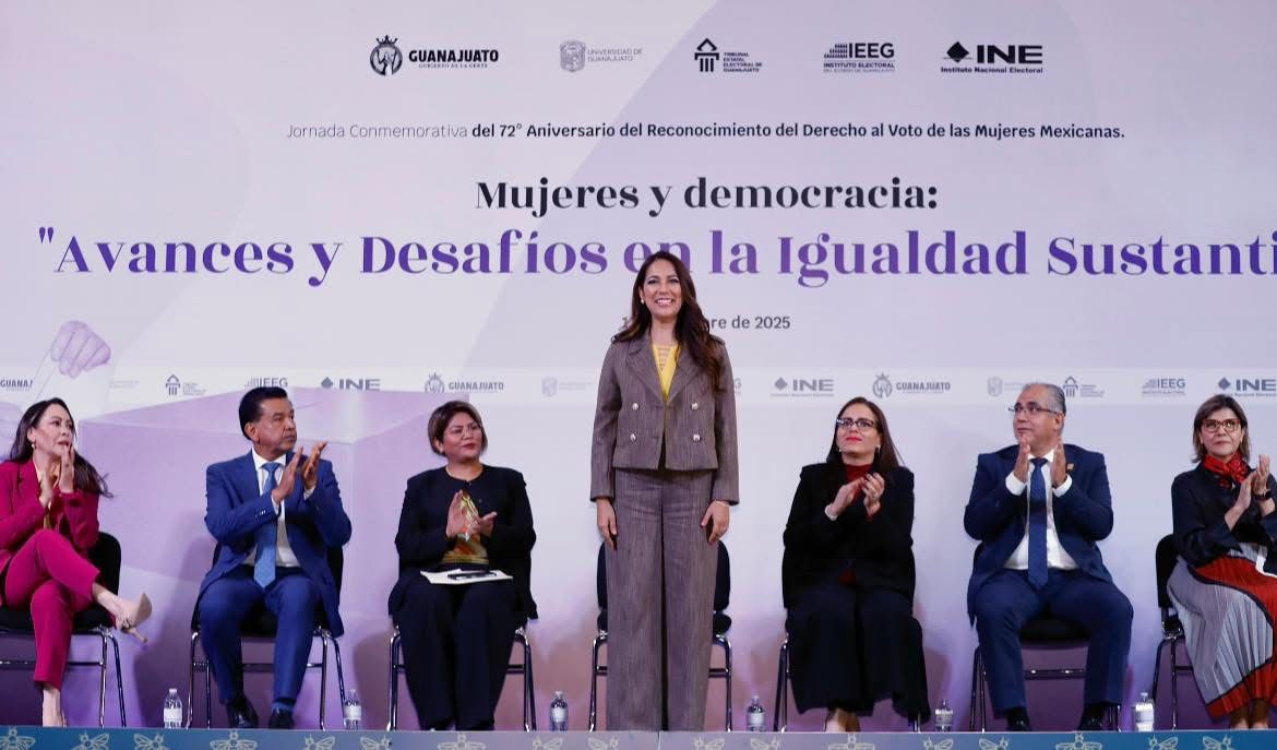 En el mismo marco, el Gobierno del Estado participó en la jornada “Mujeres y Democracia: Avances y Desafíos en la Igualdad Sustantiva”, organizada por el INE Guanajuato, el IEEG, el Tribunal Electoral y la Universidad de Guanajuato, para conmemorar los 72 años del voto de las mujeres en México.