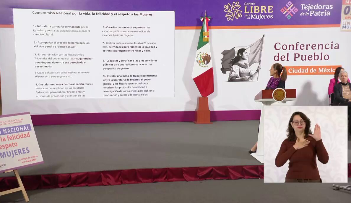 En el marco del Día Internacional de la Eliminación de la Violencia contra la Mujer, la presidenta Claudia Sheinbaum Pardo presentó un nuevo Plan Nacional contra la Violencia de Género, una estrategia que busca homologar leyes, fortalecer la atención a víctimas y coordinar acciones entre los tres niveles de gobierno.
