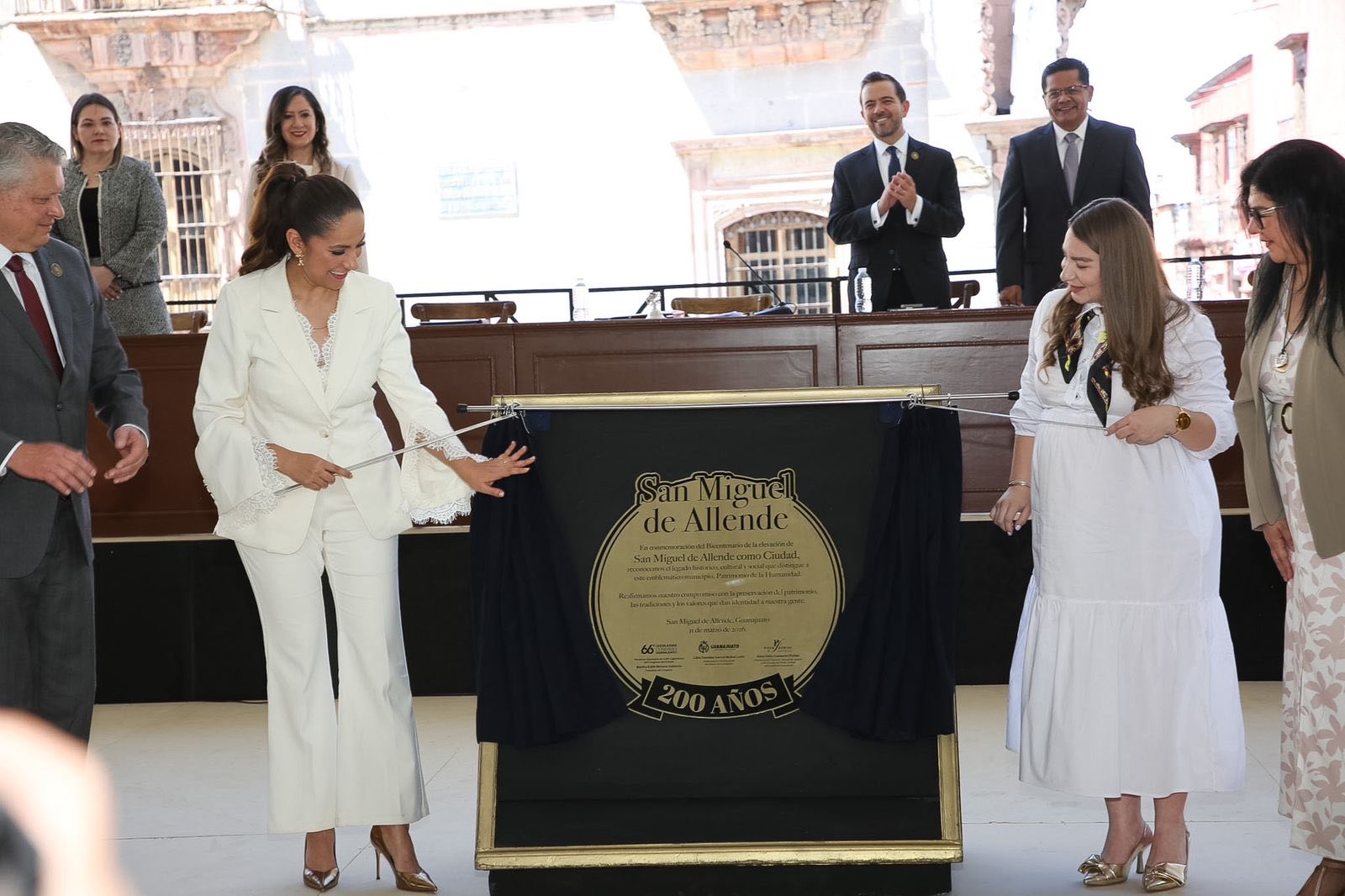 San Miguel de Allende, Guanajuato. En el marco de la conmemoración por el 200 aniversario del nombramiento de San Miguel de Allende como ciudad, la gobernadora Libia Dennise García Muñoz Ledo reconoció el legado y la contribución histórica de las mujeres sanmiguelenses en el desarrollo social, cultural y económico de Guanajuato.