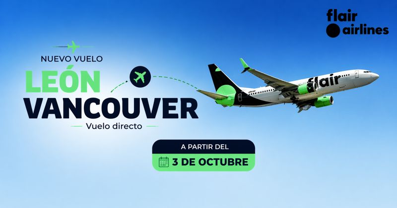 Guanajuato, Gto. A partir del próximo 3 de octubre, el Aeropuerto Internacional del Bajío contará con un vuelo directo hacia Vancouver, Canadá, operado por la aerolínea Flair Airlines, anunció la gobernadora Libia Dennise García Muñoz Ledo.